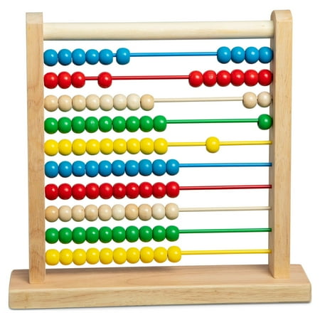 Kids can count on this wooden calculator for years of play and learning! The Melissa & Doug Abacus is beautifully crafted with a solid hardwood base and 100 brightly colored wooden beads. The sturdy frame holds 10 thick-coated wires with 10 colorful wooden beads on each — 100 beads in all. Younger kids can slide the beads back and forth to explore different patterns and colors while practicing their fine motor skills. Older children can enjoy using the abacus as a visual and hands-on way to learn addition and subtraction and other early math concepts. The beads are sized for little hands and glide easily across the smooth wires. The counting toy comes with eight extension activities to add to your child s learning experience. With no loose pieces and no mess it s a great toy to pack in a bag for on-the-go play. The abacus makes a great gift for kids ages three and older for hands-on screen-free play.